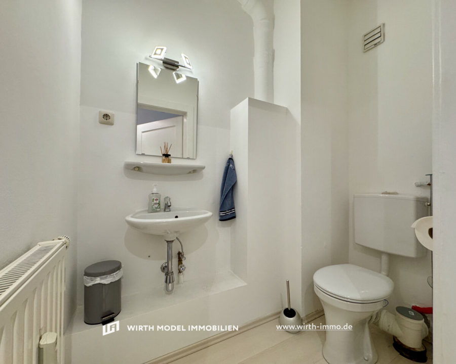 - Drei sanitäre Anlagen in Form jeweils eines WCs vorhanden