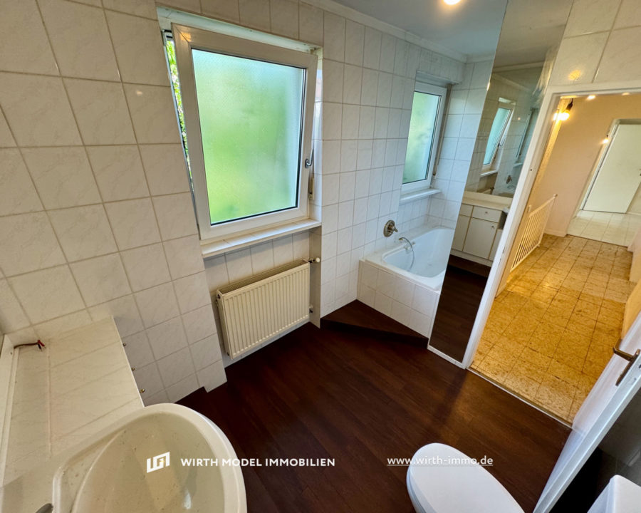 Das sonstige Erdgeschoss wird durch einen Flurbereich erschlossen und beinhaltet ein Schlafzimmer, ein Kinderzimmer sowie ein Badezimmer mit WC, Handwaschbecken sowie Badewanne. Es handelt sich um ein Tageslicht-Badezimmer.