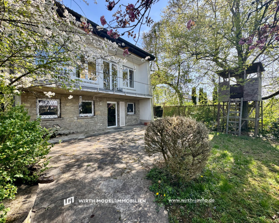 Zum Verkauf steht dieses charmante freistehende Einfamilienhaus in traumhafter Aussichtslage an der Schweinfurter Haardt. Betreten wird dieses durch einen Windfang, welcher gelungen in den einladenden und repräsentativ gestalteten Dielenbereich mit Frühstücksessbereich überleitet. Die Küche ist unmittelbar durch den Dielenbereich zu betreten und verfügt über einen Zugang zur praktischen Speisekammer. Das großzügige Wohn-/Esszimmer ist durch großflächige Fensterflächen sehr schön belichtet und bietet einen traumhaften Ausblick in die Natur. Der Wohnbereich ist durch eine kleine Treppenanlage vom Essbereich separiert und ermöglicht den Zugang auf den Balkon. Durch die o. g. Diele und den Essbereich kann weiterhin die großflächige Sonnenterrasse mit direktem Gartenzugang betreten werden.