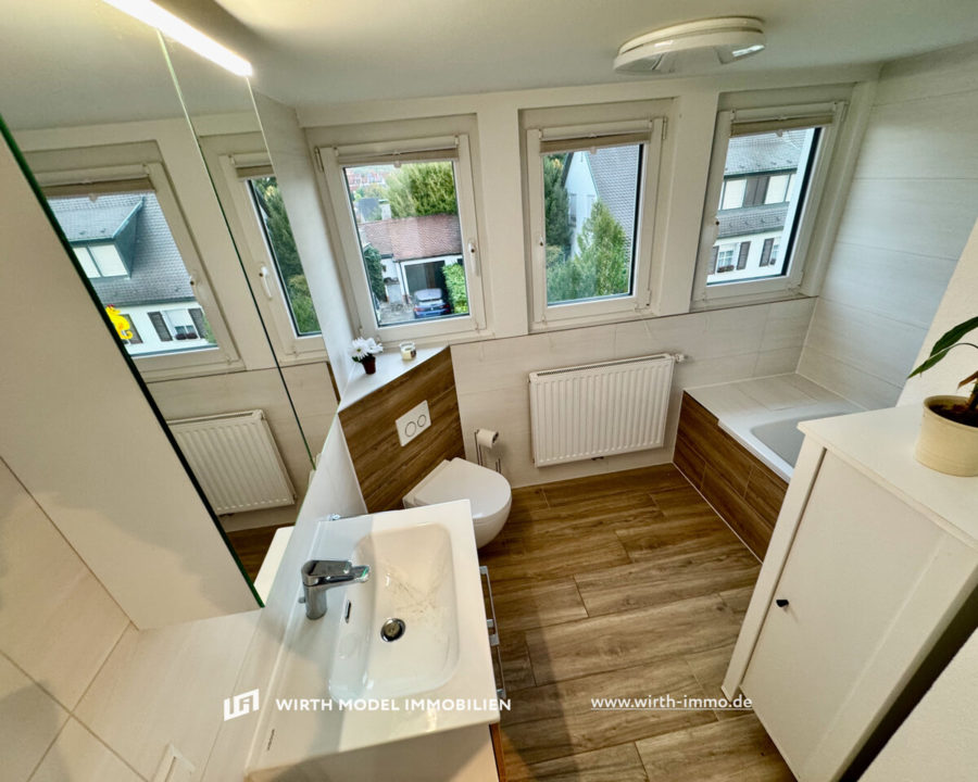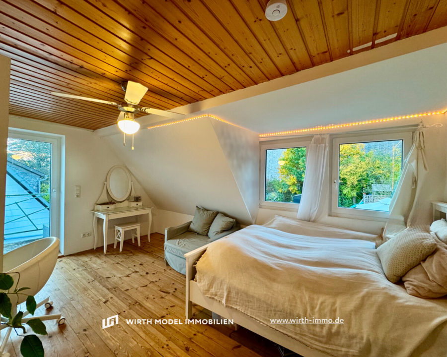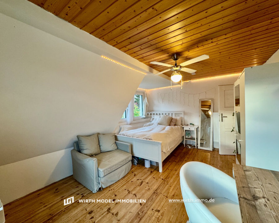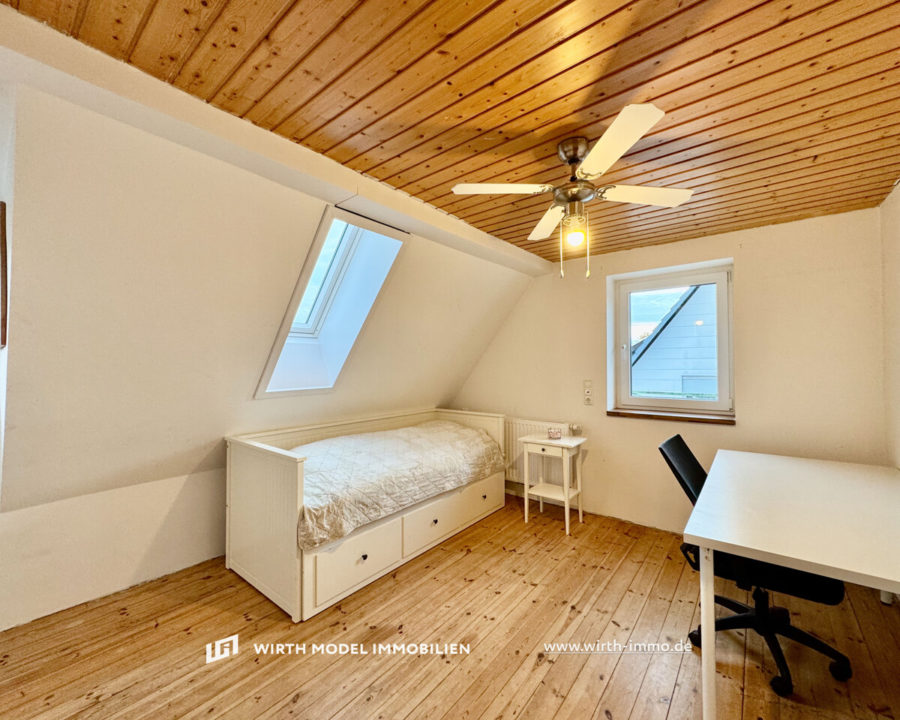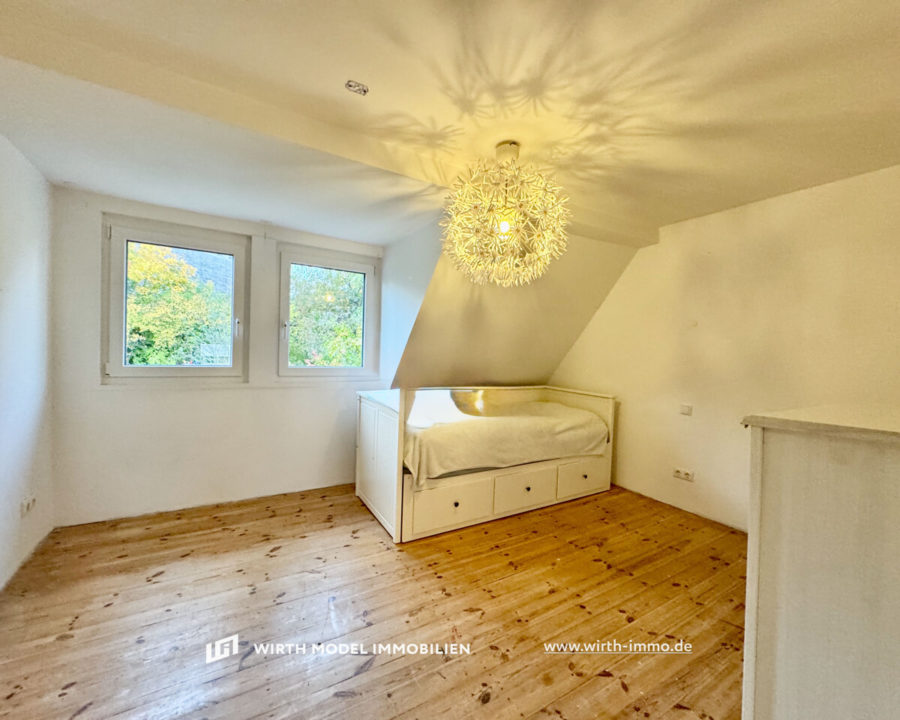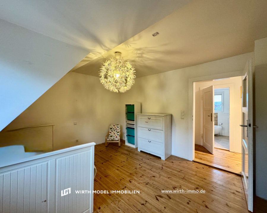 Das Obergeschoss der Immobilie wird durch einen Flurbereich erschlossen und beinhaltet drei sehr geräumige und ansprechende Kinderzimmer. Eines dieser Kinderzimmer verfügt über einen Zugang auf den Balkon. Zwei Dachgauben sorgen für ein schönes und großzügiges Raumgefühl. Komplettiert wird das Dachgeschoss durch ein Tageslicht-Badezimmer mit Badewanne, WC und Handwaschbecken.