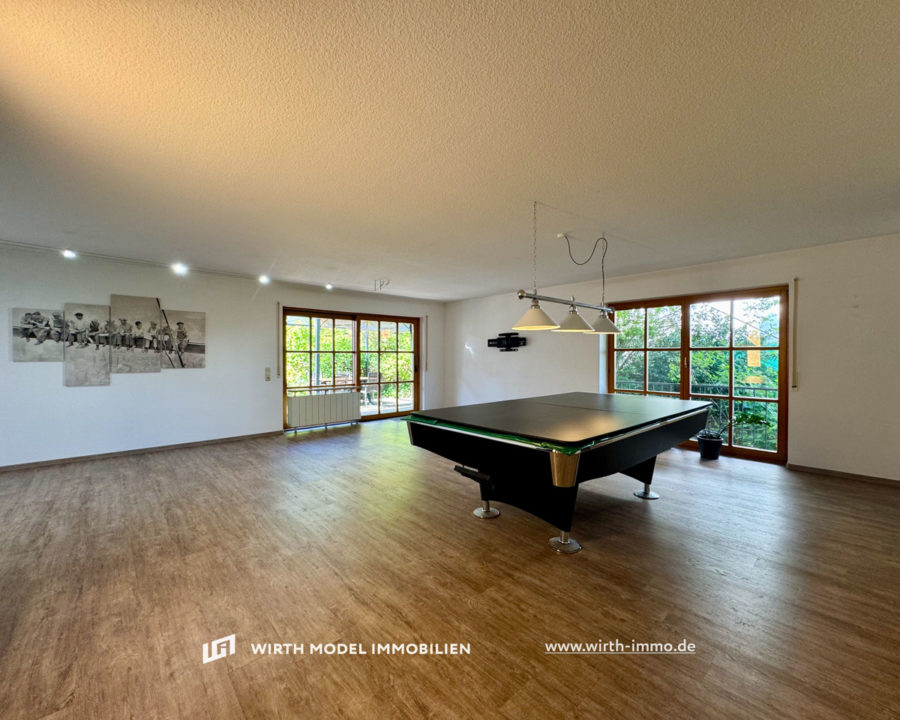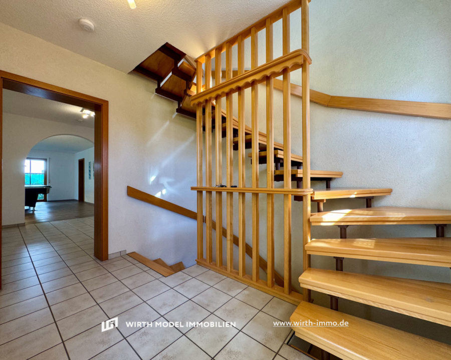 Die Immobilie ist vollunterkellert und durch die rückwärtige Hanglage ist das Untergeschoss teilweise vollwertig wohnwirtschaftlich nutzbar. So stehen im Untergeschoss zwei Lagerkeller, der Heizraum mit Pellet Heizung (Einbau 2022), ein Waschraum sowie ein Hobbyraum mit benachbartem Tageslicht-Dusch-Badezimmer zur Verfügung. Das Untergeschoss kann gartenseitig durch einen separaten Hauszugang betreten werden.