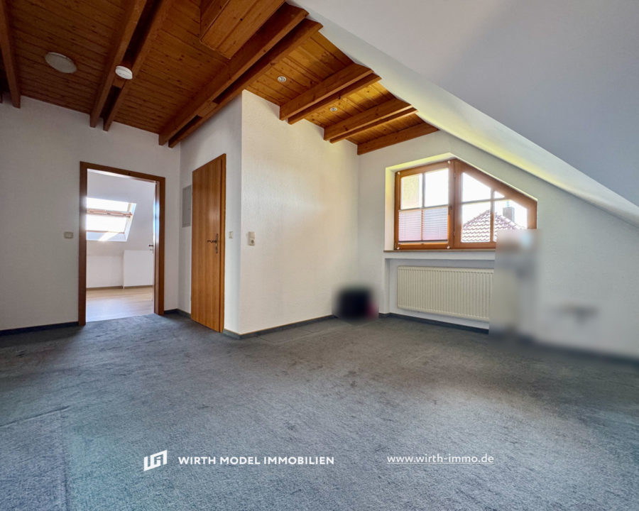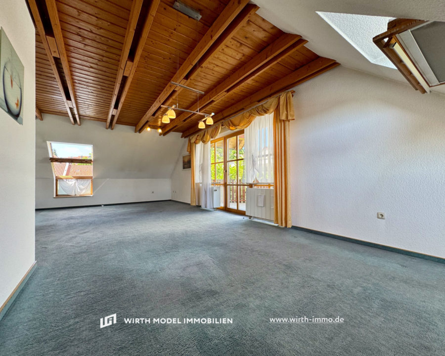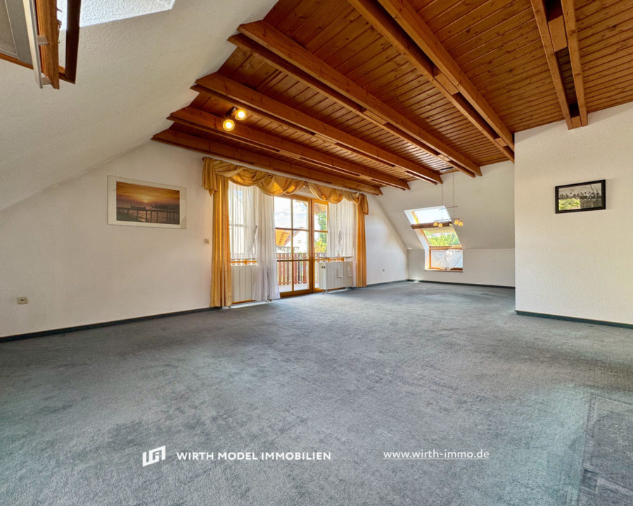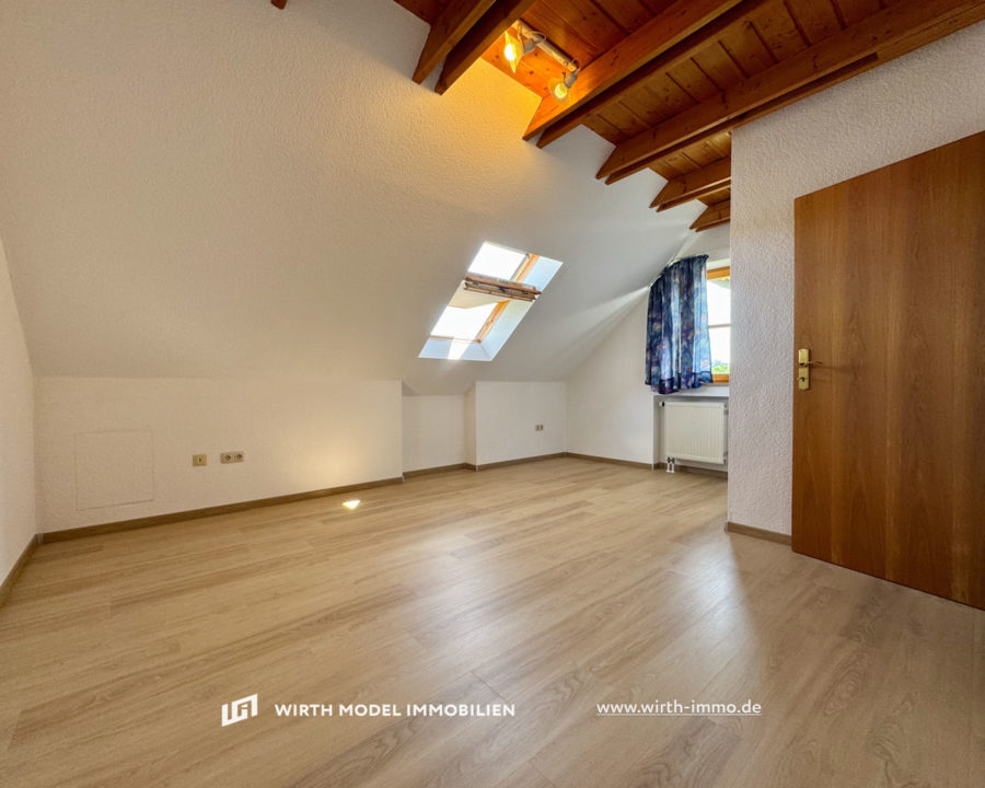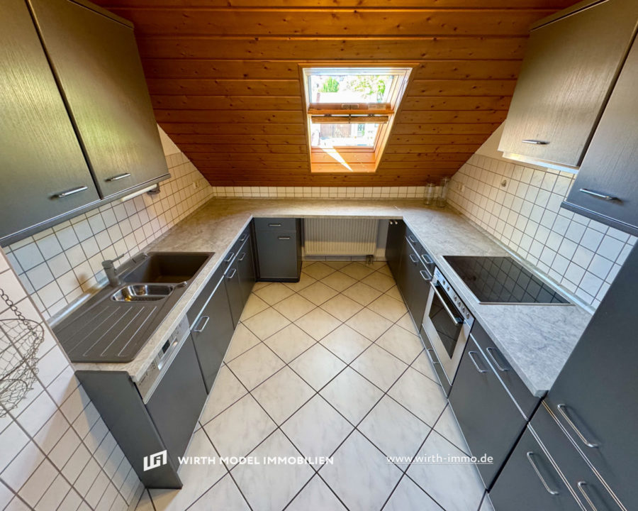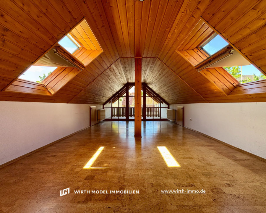 Das Dachgeschoss des Hauses wird gleichermaßen durch eine Diele erschlossen, welche als offener Arbeitsbereich fungiert und den Zugang in den großen Hobbyraum mit zugehöriger Loggia ermöglicht. Die verbleibende Fläche besteht aus einer Küche inklusive Einbauküche, sowie aus einem geräumigen, offenen Wohn-/Essbereich mit Balkon-Zugang. Komplettiert wird das Dachgeschoss durch ein Tageslicht-Badezimmer mit Dusche, Wanne, WC und Handwaschbecken sowie durch ein Schlafzimmer.