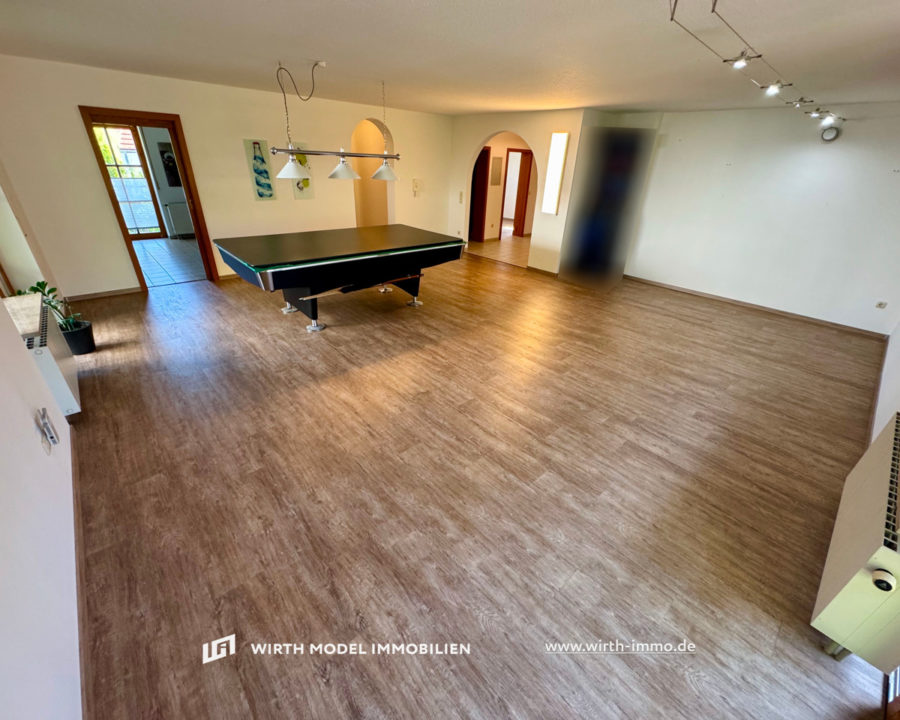 Zum Verkauf steht dieses freistehende Ein-/Zweifamilienhaus auf einem 734 m² großen Grundstück in gefragter Lage an der Schweinfurter Eselshöhe. Betreten wird dieses über das Treppenhaus, welches gelungen in die Erdgeschoss-Wohnebene überleitet. Erschlossen wird diese durch eine geräumige Diele mit Zugang in das Schlafzimmer und Kinderzimmer. Das Tageslicht Badezimmer beinhaltet ein Waschbecken, ein WC, eine Dusche sowie eine Badewanne. Das weitere Erdgeschoss ist sehr offen gestaltet und verfügt über ein geräumiges Wohn-/Esszimmer mit einer Fläche von rd. 35 m² und unmittelbarem Zugang in die Küche mit zugehöriger Speisekammer. Die Einbauküche mit den Elektrogeräten ist im Kaufpreis enthalten und wird mitverkauft. Eine Austrittsmöglichkeit auf die Gartenterrasse und in den Garten ist durch den offenen Wohn-/Essbereich gegeben. Ein kleiner Küchen-Balkon rundet das Erdgeschoss ab.