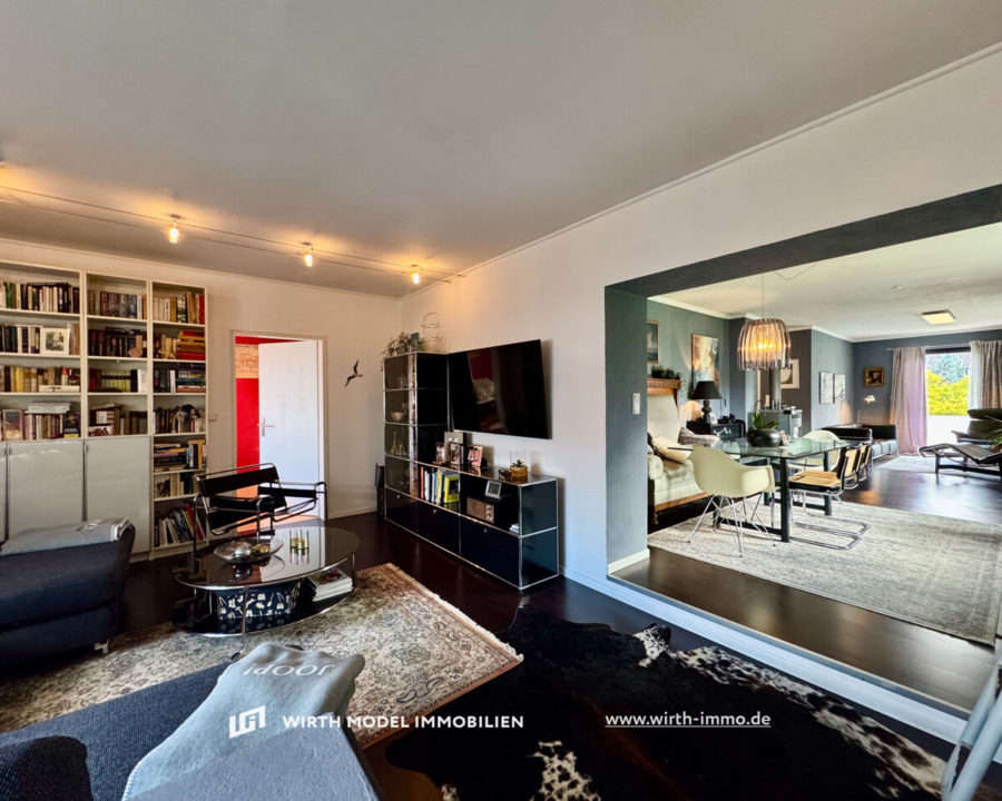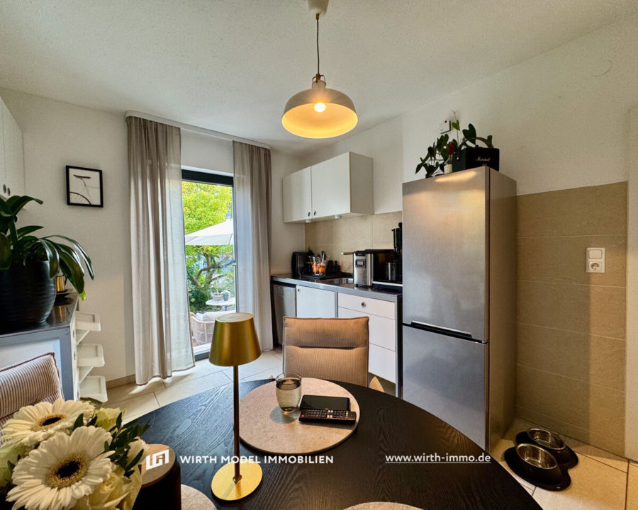 Die Erdgeschosswohnung verfügt über rd.81 m² Wohnfläche und umfasst zwei Zimmer. Ein schöner Dielenbereich erschließt alle Räume und führt in die moderne Wohnküche mit Einbauküche und Zugang zur Gartenterrasse. Das Schlafzimmer ist schön geschnitten und bietet ausreichend Platz für einen großen Kleiderschrank.
