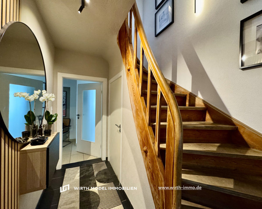 Bereits der gepflegte Vorgarten vermittelt einen einladenden ersten Eindruck und führt harmonisch zum Hauseingang. Betreten wird die Immobilie über ein äußerst gepflegtes und modernes Treppenhaus.