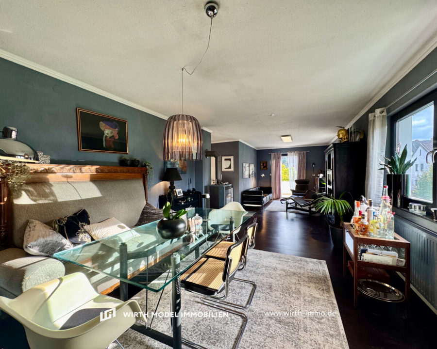 Der großzügige Wohn-/Essbereich bietet direkten Zugang zum Balkon. Das Tageslichtbad wurde renoviert und ist mit Badewanne, WC und Waschbecken ausgestattet.