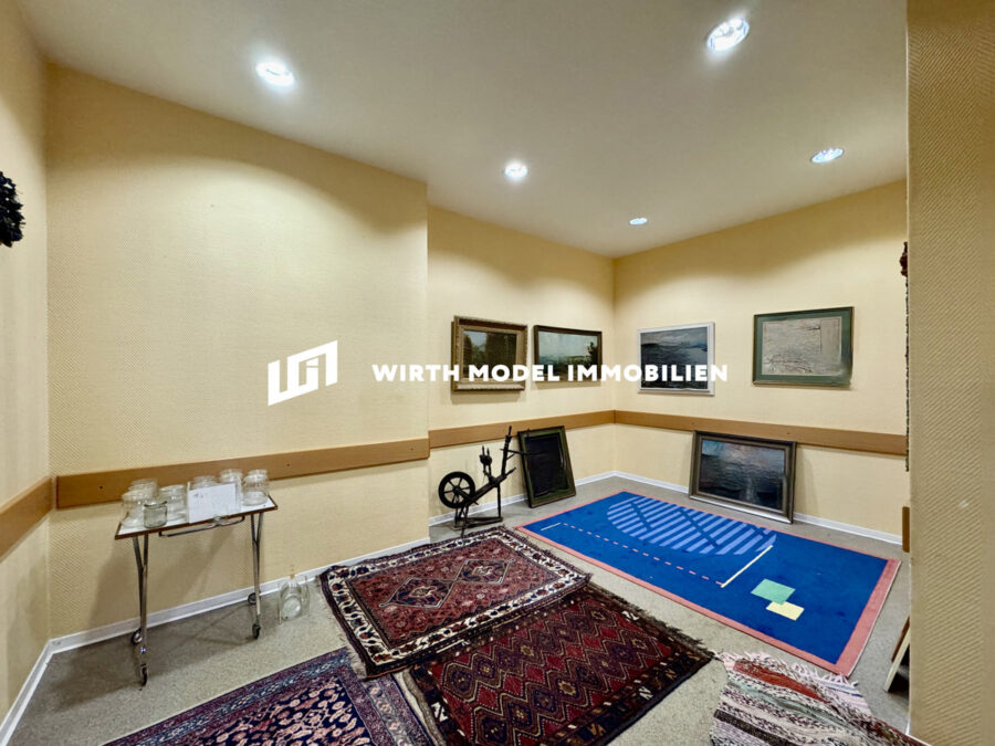 Die Liegenschaft wurde im Jahre 1977 durch einen Anbau ergänzt. Dieser hat als Arzt-Praxis fungiert und wurde durch einen Empfangsbereich in der Grundfläche des Erdgeschosses des Haupthauses betreten. Durch diesen Bereich war das Behandlungszimmer 1 sowie der lange Flurbereich des Anbaus erreichbar. Dieser beinhaltet drei weitere Behandlungsräume sowie ein Labor, ein Tageslicht-Badezimmer mit Dusche, WC, Wanne und Handwaschbecken sowie ein separates WC mit Handwaschbecken. Betreten werden kann diese Fläche auch durch einen durch den Hofbereich zugänglichen Hauseingang. In diesem ist das Treppenhaus zum Untergeschoss und in die erste Einzelgarage mit Elektrotor gelegen. Die Fläche des Praxisbereichs beläuft sich auf rd. 174 m².