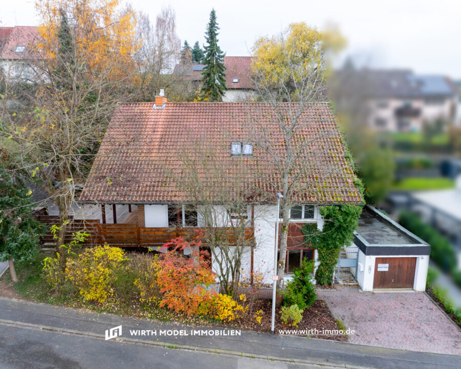 Zum Verkauf steht ein Flurstück mit 709 m in gefragter Lage Üchtelhausens im Ortsteil Zell. Das Flurstück ist mit einem freistehenden Einfamilienhaus aus dem Jahre 1984 gebaut und verfügt über eine Einliegerwohnung in der Untergeschossebene.