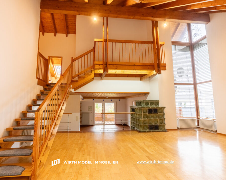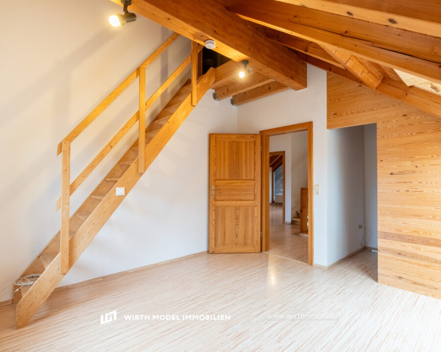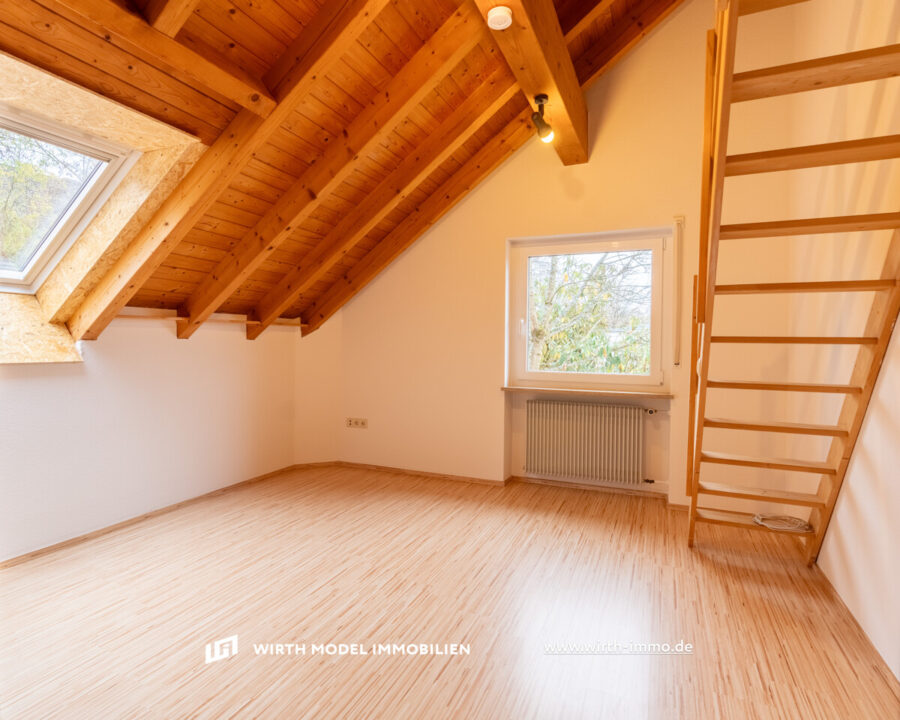 Durch die vorhandene Galerie zum Dachgeschoss ist die Raumhöhe als überdurchschnittlich zu bezeichnen. In der Dachgeschoss-Ebene ist eine Diele, ein Tageslicht-Badezimmer, ein Schlafzimmer sowie zwei Kinderzimmer (eines mit Balkon-Zugang) vorzufinden.