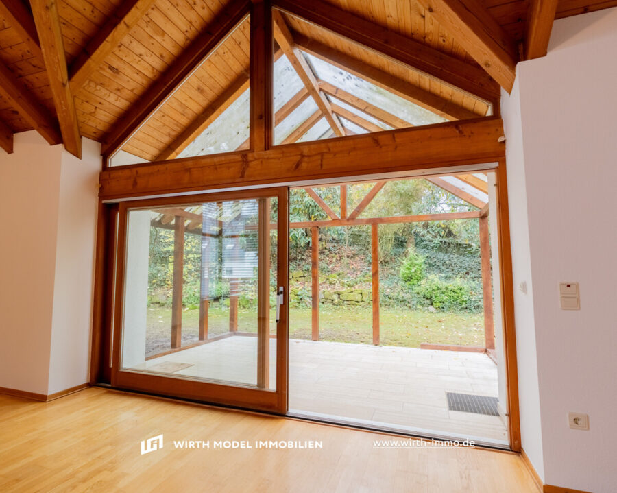 Das großzügige Wohnzimmer ist durch große Fensterflächen sehr schön belichtet und ermöglicht dies Austrittsmöglichkeit auf einer der Gartenterrassen sowie in den Garten.