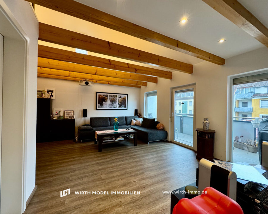 - Wohnzimmer besticht durch überdurchschnittliche Raumhöhe sowie durch einen Balkon-Zugang (Markise vorhanden)