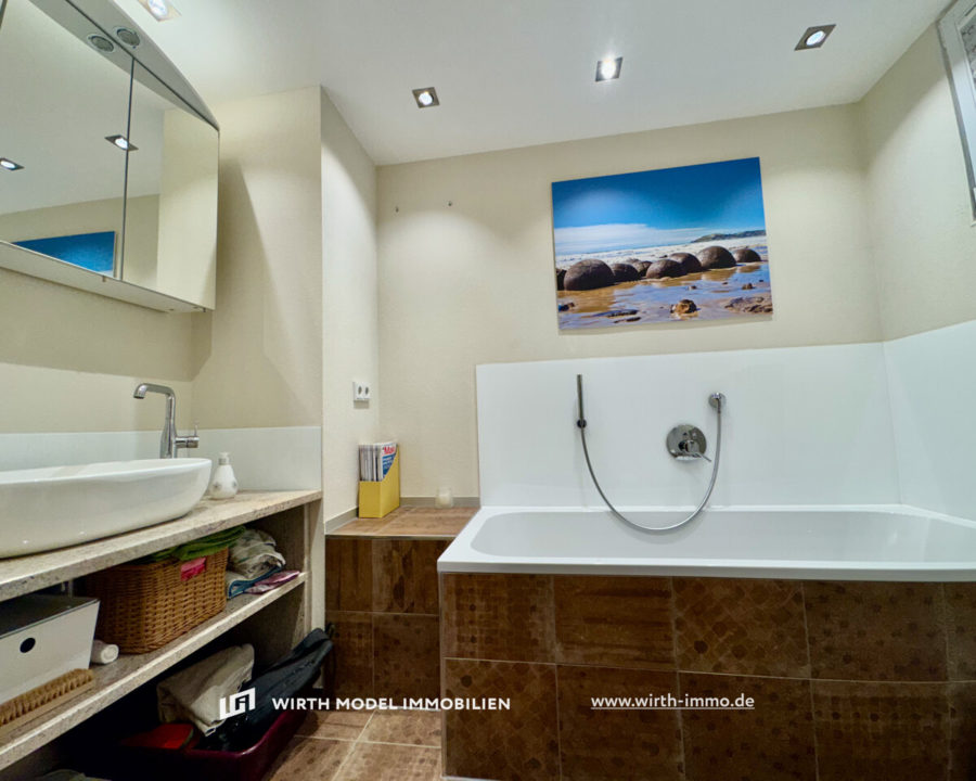 - Saniertes Badezimmer mit Wanne, WC und Handwaschbecken vorhanden