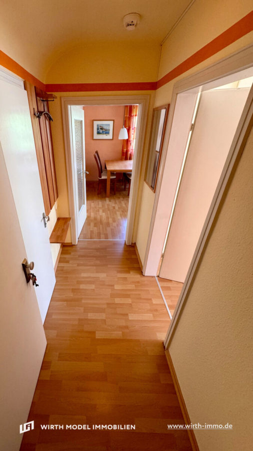 - Raumaufteilung: Flur, Badezimmer, Schlafzimmer, offener Wohn-/Essbereich, Küche
